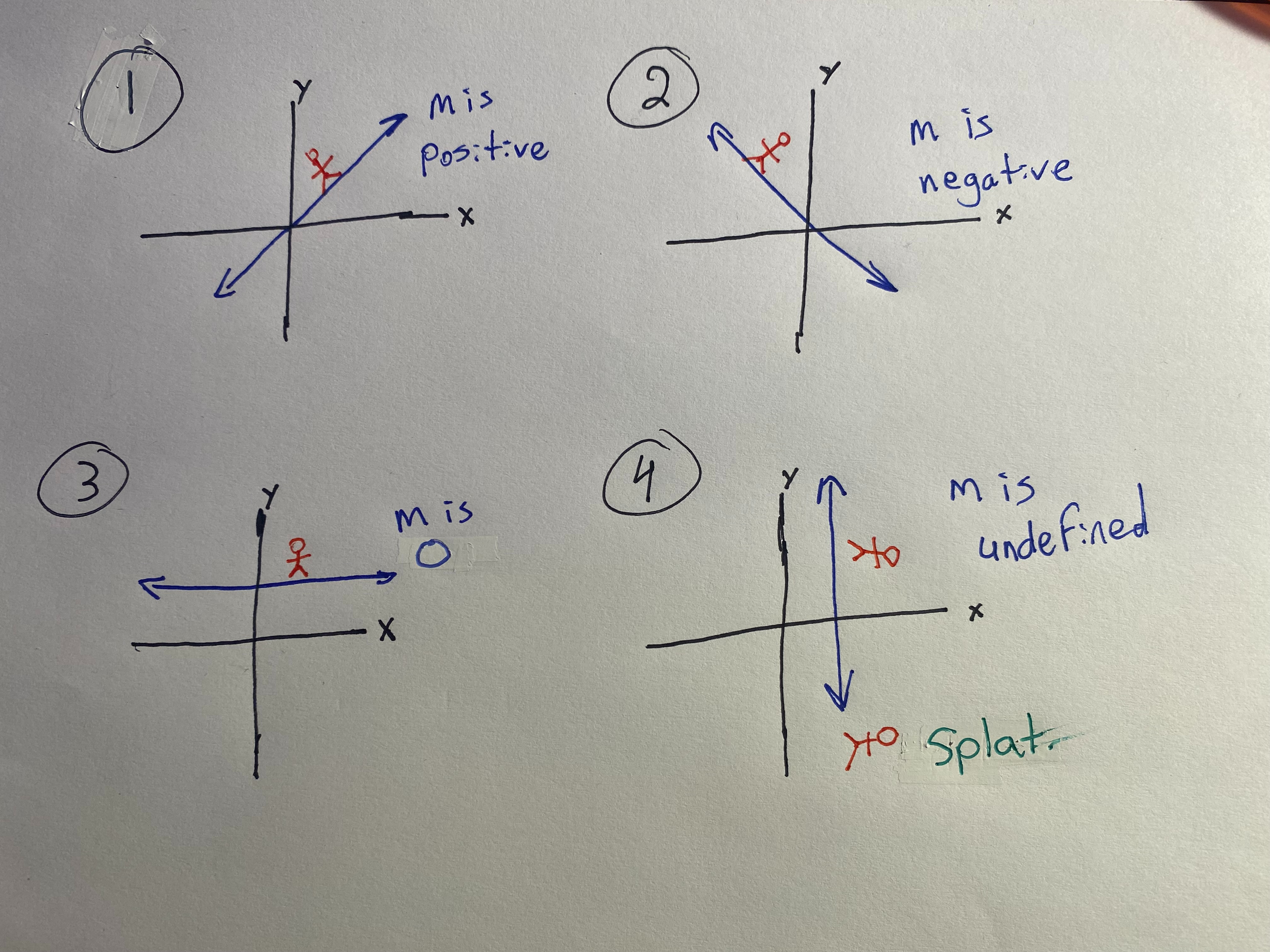 I feel like each of the graphs above have described my journey to this point. Not necessarily simultaneously, but at some point the slope has represented where I’m at. There are days I’m making some positive headway. I have that positive slope. There are some days when something happens and I’ve found myself heading in a non positive direction. Some days, I’m just chilling. Not making a change in terms of getting worse or getting better. Some days, and these are my favorite (note my use of sarcasm), the slope of my life is undefined, and I’m just freefalling without an end in sight.